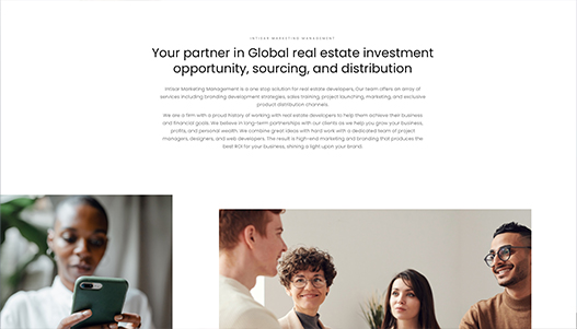 Intisar Marketing Management is a one stop solution for real estate developers, Our team offers an array of services including branding development strategies, sales training, project launching, marketing, and exclusive product distribution channels.